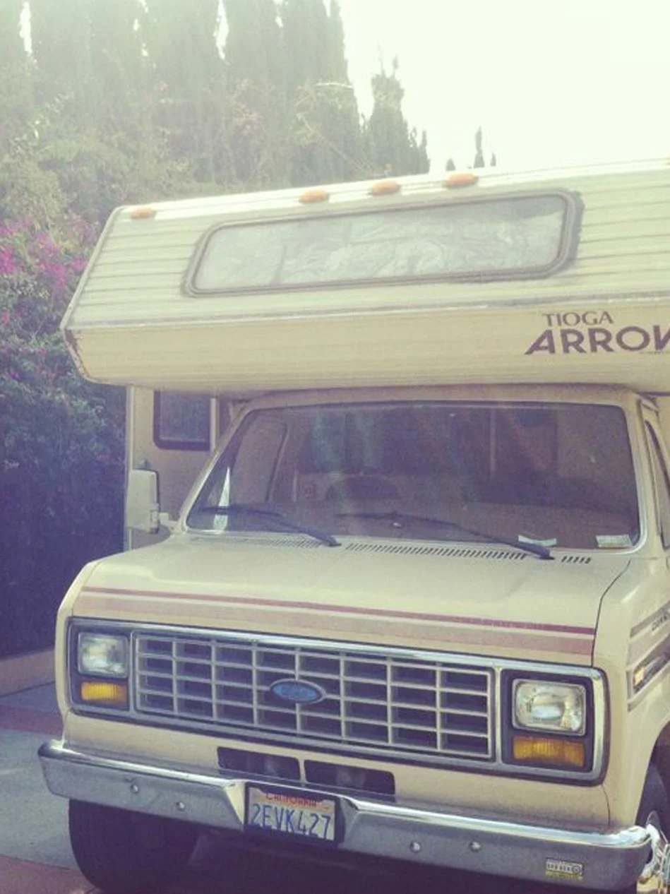Meet Chevy. A rustic Tioga motorhome made in 1987, runs like a dream and is as old as I am. Four days after we landed in California we bought him and named him after Chevy Chase.